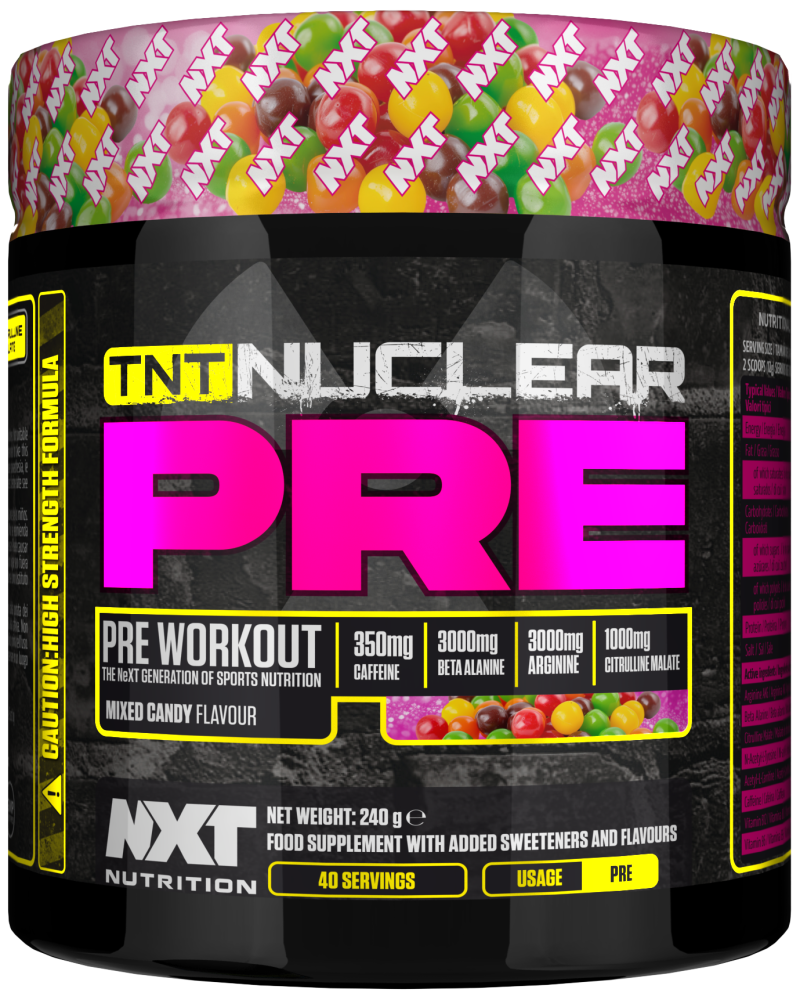 تركيبة TNT Nuclear PRE هي سلاحك لزيادة القوة والتحمل والتركيز، لضمان أنك تقدم أفضل أداء في كل تمرين.